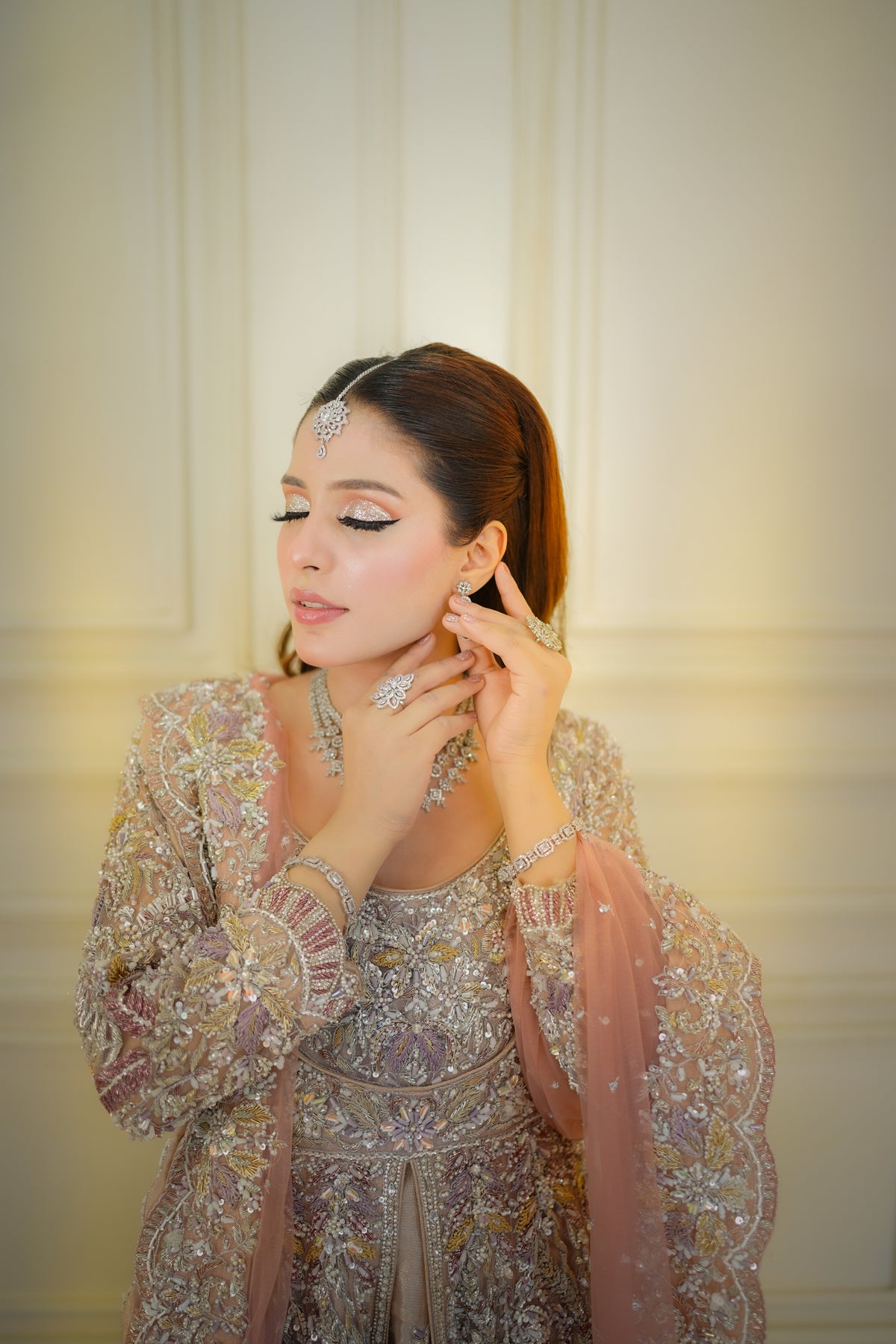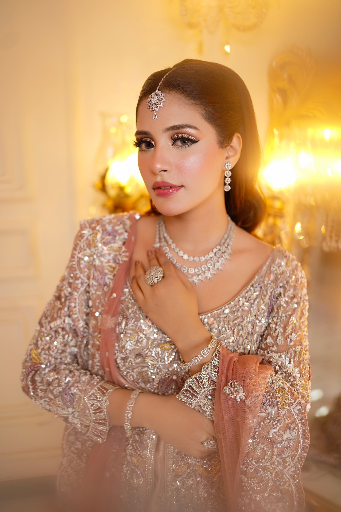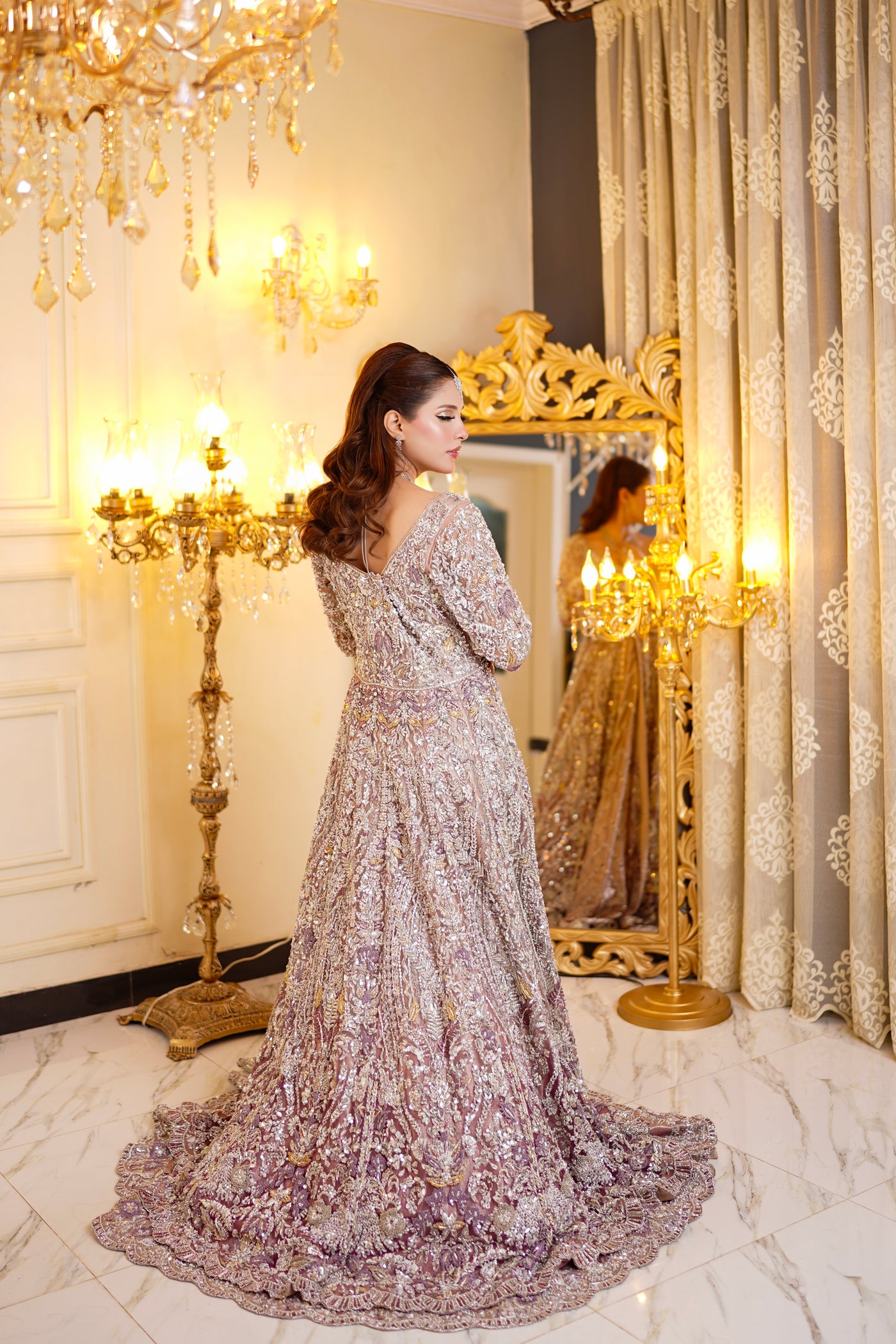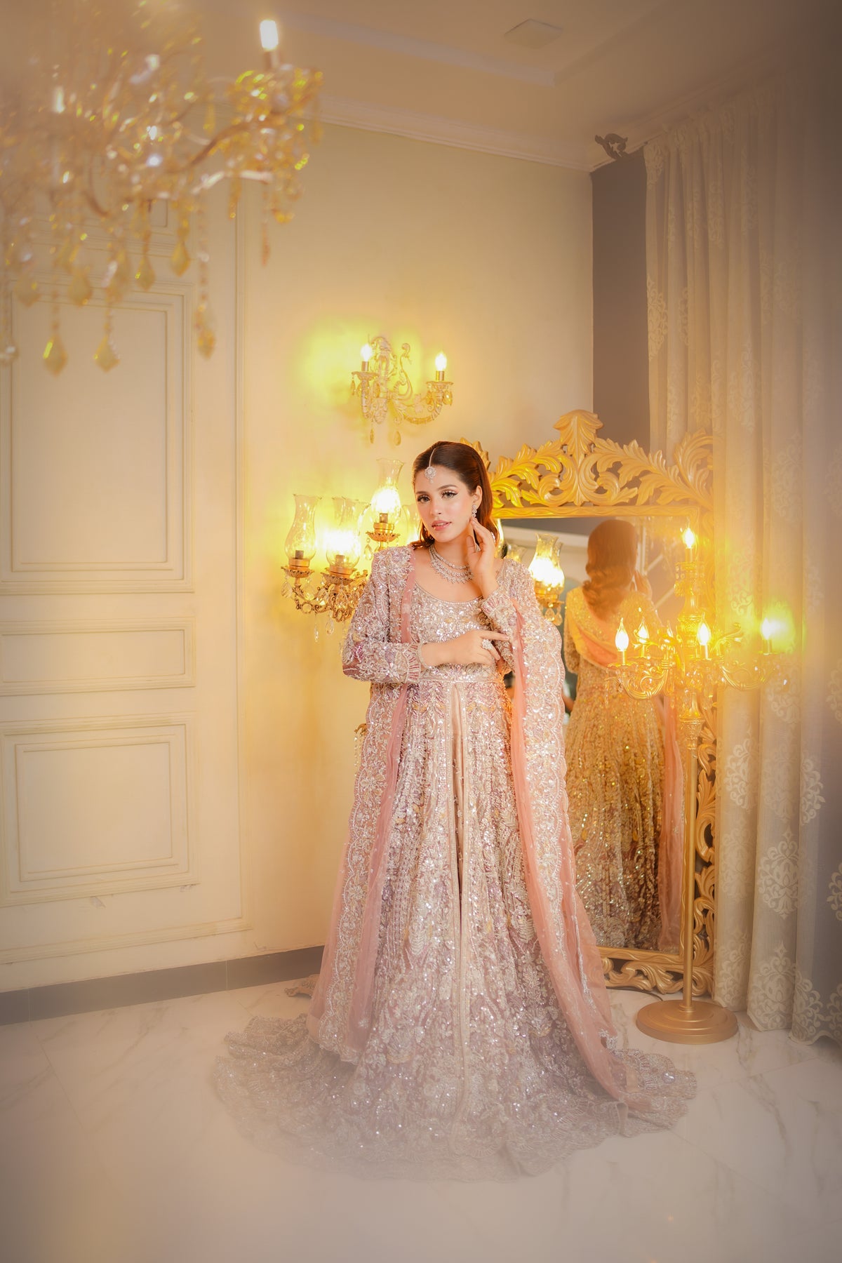 The Majestic Charm dress from Roshanara Bridal Collection is a stunning example of bridal elegance. The rich embroidery and intricate details are complemented by luxurious fabrics, offering a royal touch to your wedding attire. The bold design, combined with graceful embellishments, is perfect for making a statement while maintaining timeless beauty. Whether it’s a traditional or contemporary wedding, this dress ensures that you stand out with elegance and charm. Feel majestic and beautiful as you celebrate the most important day of your life.
